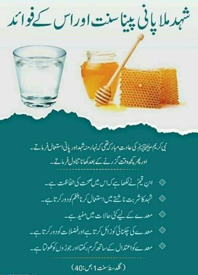 نبیِّ کریم صلَّی اللہ علیہ واٰلہٖ وسلَّم سے شہد نوش فرماناثابت ہے *آقا کریم صلَّی اللہ علیہ واٰلہٖ وسلَّم کو شہد پسند تھا *شہد سے شفا حاصل ہوتی ہے *طبی فوائد کی وجہ سےشہد کو بطورِ علاج استعمال کیا جاسکتا ہے۔